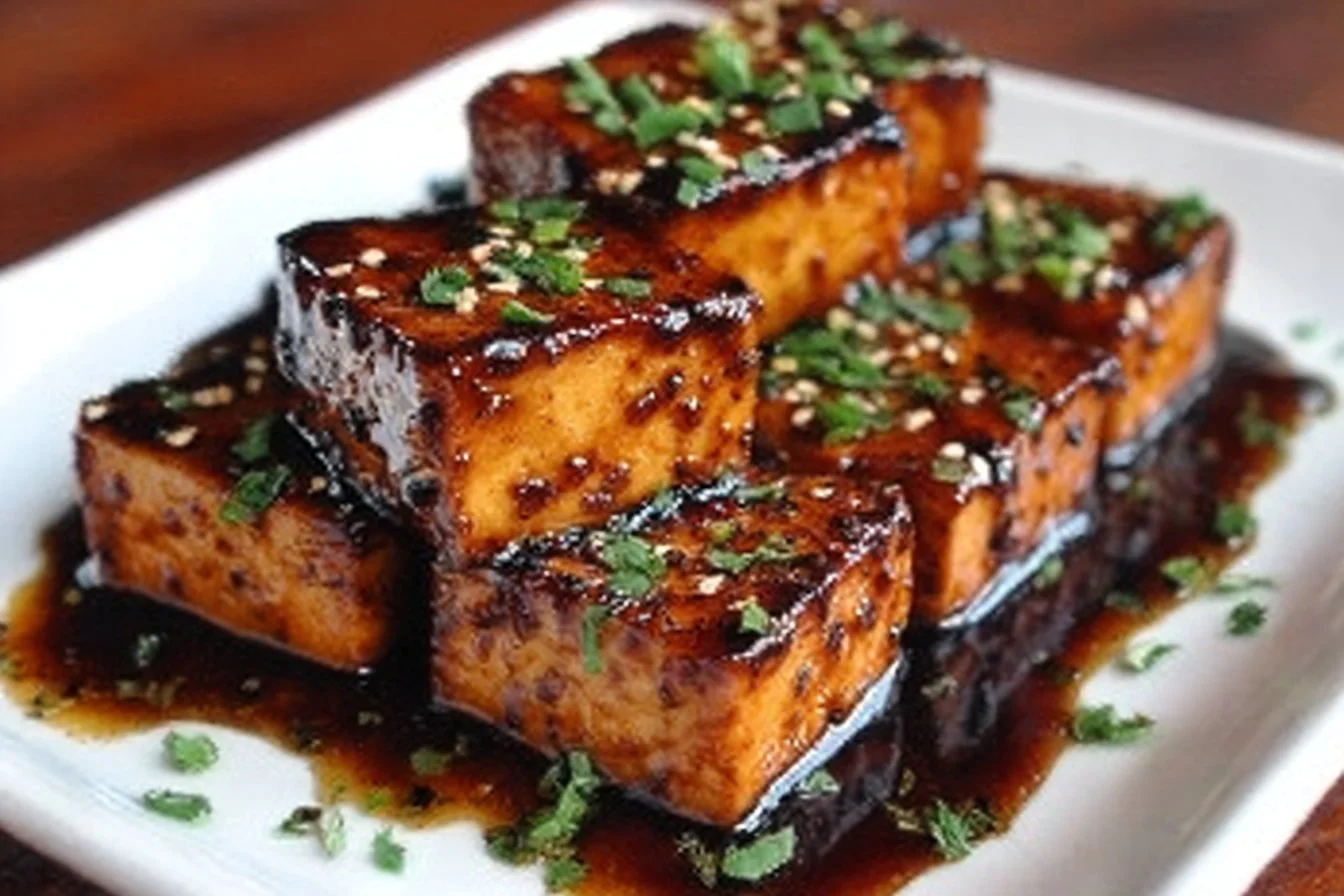 A delicious plant-based dish featuring crispy golden tofu with a tangy balsamic reduction that elevates any meal.