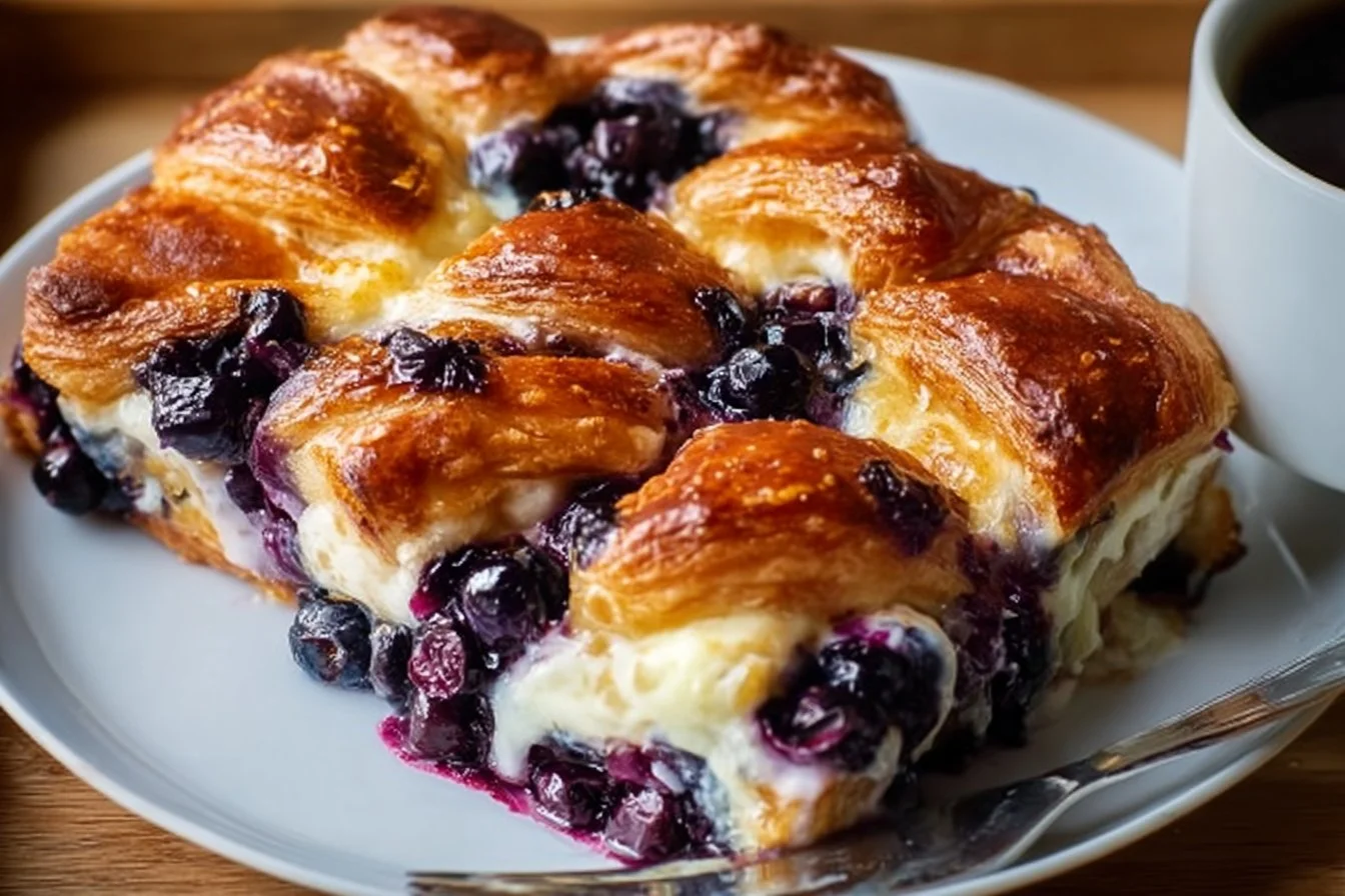 The Irresistible Blueberry Cream Cheese Croissant Casserole