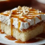 - Spread the whipped cream over the soaked cake, then drizzle with caramel sauce.