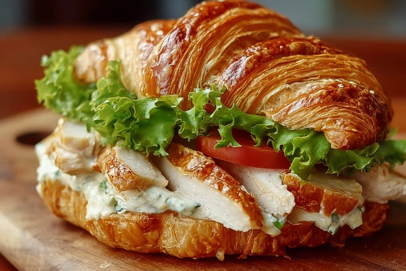 Chicken Caesar Croissant Sandwich with fresh ingredients and Caesar dressing