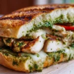 A quick and satisfying Chicken Pesto Sandwich made with juicy chicken, vibrant pesto, and gooey mozzarella, perfect for lunch or dinner.