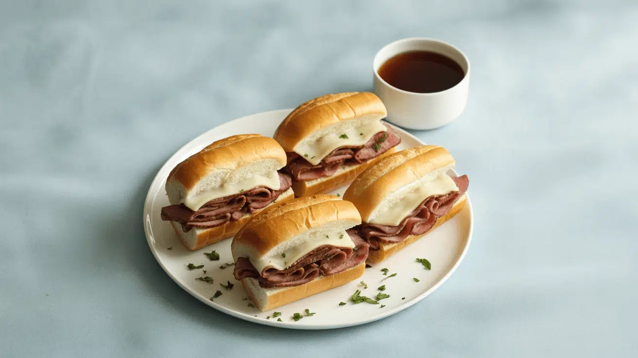 - Serve with Au Jus: Ladle the hot au jus into small bowls for dipping. Serve the French dip sandwiches immediately, with optional garnishes or sides.