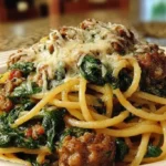 Garlic Butter Spaghetti with Cheesy Italian Sausage and Spinach is a dish that brings warmth and comfort with every bite. This delightfully rich pasta dish combines the earthy flavors of Italian sausage, the brightness of fresh spinach, and the indulgence of gooey cheese, all enveloped in a fragrant garlic butter sauce. Perfect for weeknight dinners or cozy gatherings, it’s a soul-satisfying meal that can be put together in less than 30 minutes.