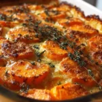 A cozy and flavorful dish featuring layered sweet potatoes with garlic and creamy cheese that’s perfect for family dinners.