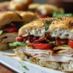 Italian Turkey Focaccia Sandwiches are a delightful twist on a classic sandwich that brings a taste of Italy right to your picnic blanket or dinner table. With layers of flavorful ingredients nestled between two pieces of soft, airy focaccia, this sandwich is not just a meal but a culinary experience. It’s perfect for a quick lunch, a laid-back dinner, or even as a showstopper at your next gathering. The combination of turkey, prosciutto, fresh mozzarella, and vibrant flavors makes this sandwich a favorite for those looking to elevate their sandwich game.