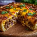 This cheeseburger pie is best served warm, straight from the oven. For an extra touch, consider serving it with a simple side salad or a mix of sautéed vegetables. It’s also delicious alongside crispy fries or potato wedges for a truly indulgent meal. If you’re feeling adventurous, top each slice with a dollop of sour cream or some sliced avocado for added creaminess.