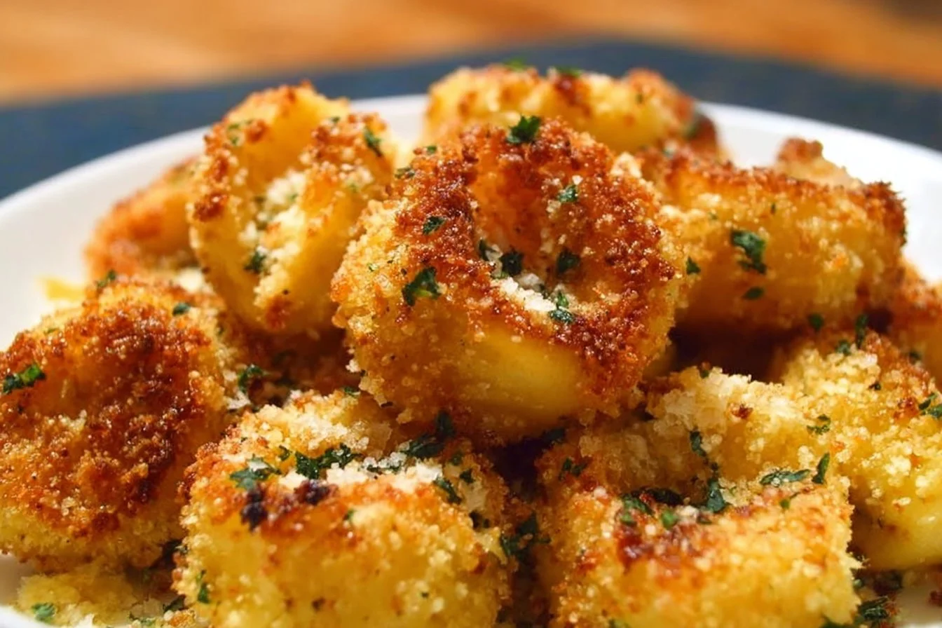 Deliciously cheesy tortellini bites coated in a crispy Parmesan breading, perfect as an appetizer or snack.