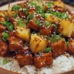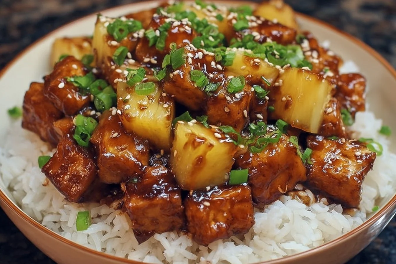 A flavorful vegan dish combining sweet pineapple and savory tofu in a rich teriyaki sauce, perfect for weeknight dinners or special gatherings.