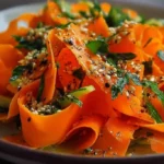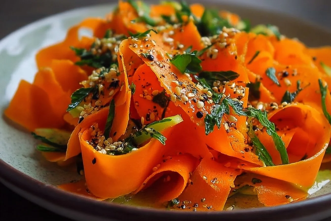 Fresh raw carrot ribbon salad with vibrant colors and healthy ingredients