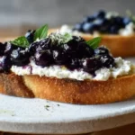 A quick and elegant dish featuring crunchy toasted bread topped with fluffy ricotta cheese and a luscious blueberry compote.
