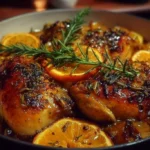 A flavorful roasted chicken glazed with orange juice and zest, infused with fresh herbs for a delicious family meal.