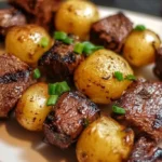 Whether you’re firing up the grill for a summer cookout or just craving a hearty meal in the colder months, these Savory Grilled Steak and Potato Kabobs deliver comfort and satisfaction.
