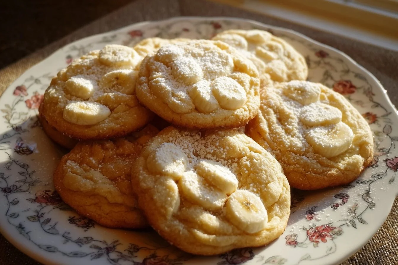 Warm and nostalgic cookies featuring ripe bananas and a hint of vanilla, reminiscent of classic southern banana pudding but in a delightful, handheld treat.