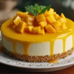 Tropical Paradise Mango Cheesecake with vibrant mango topping